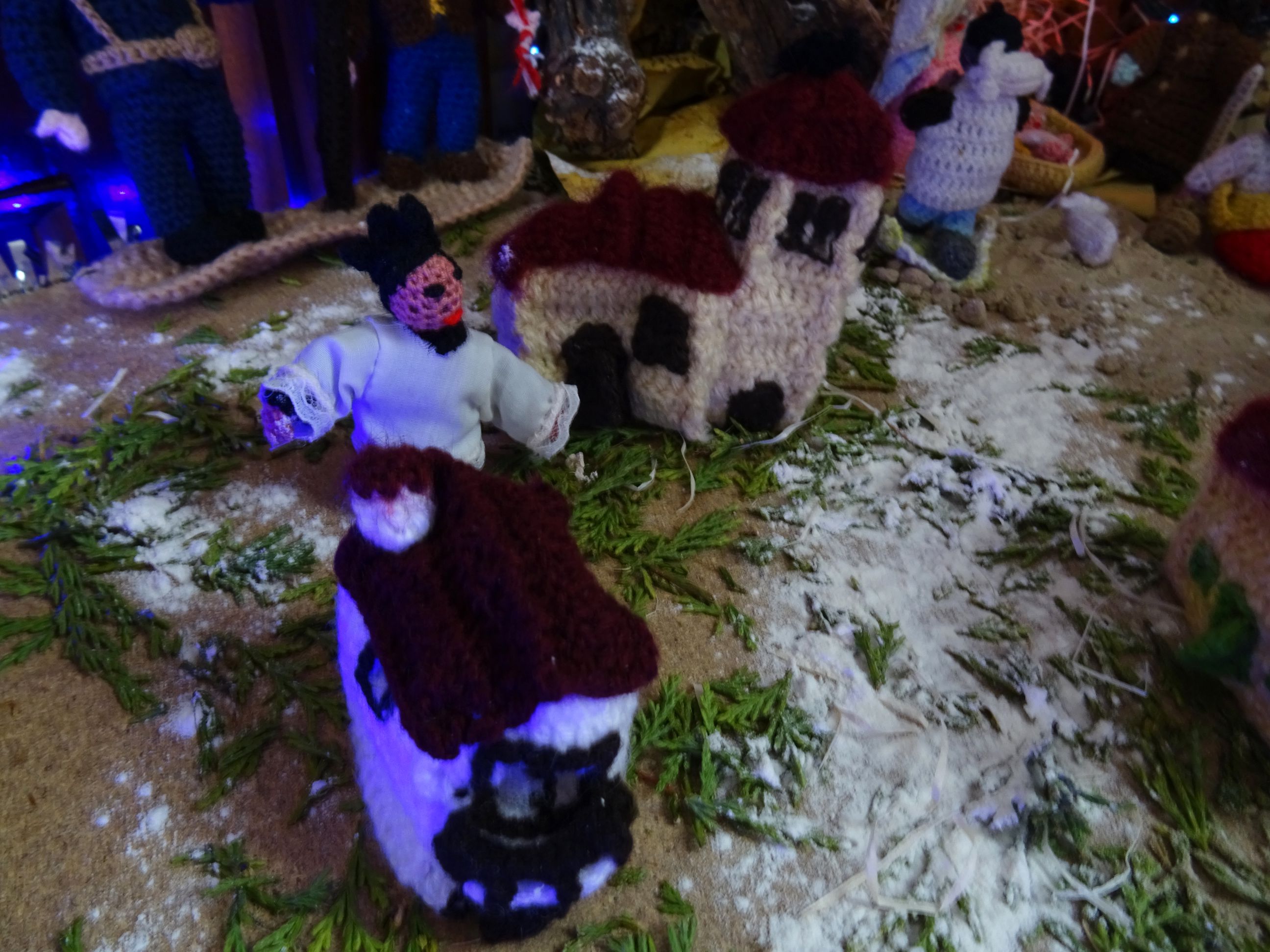 Aparecen en este nacimiento navideño muchos de los habitantes de la localidad practicando costumbres que en algunos casos van desapareciendo, como la matanza del gocho; una anciana muy carismática con el típico moño en la cabeza, de esos que también van desapareciendo, la peluquera en plena faena, el pastor, y multitud de personajes más (hasta el cura sale), todos sin excepción hechos a ganchillo; y esa es la peculiaridad de esta pequeña obra de arte, máxime teniendo en cuenta el tamaño de las figuras.